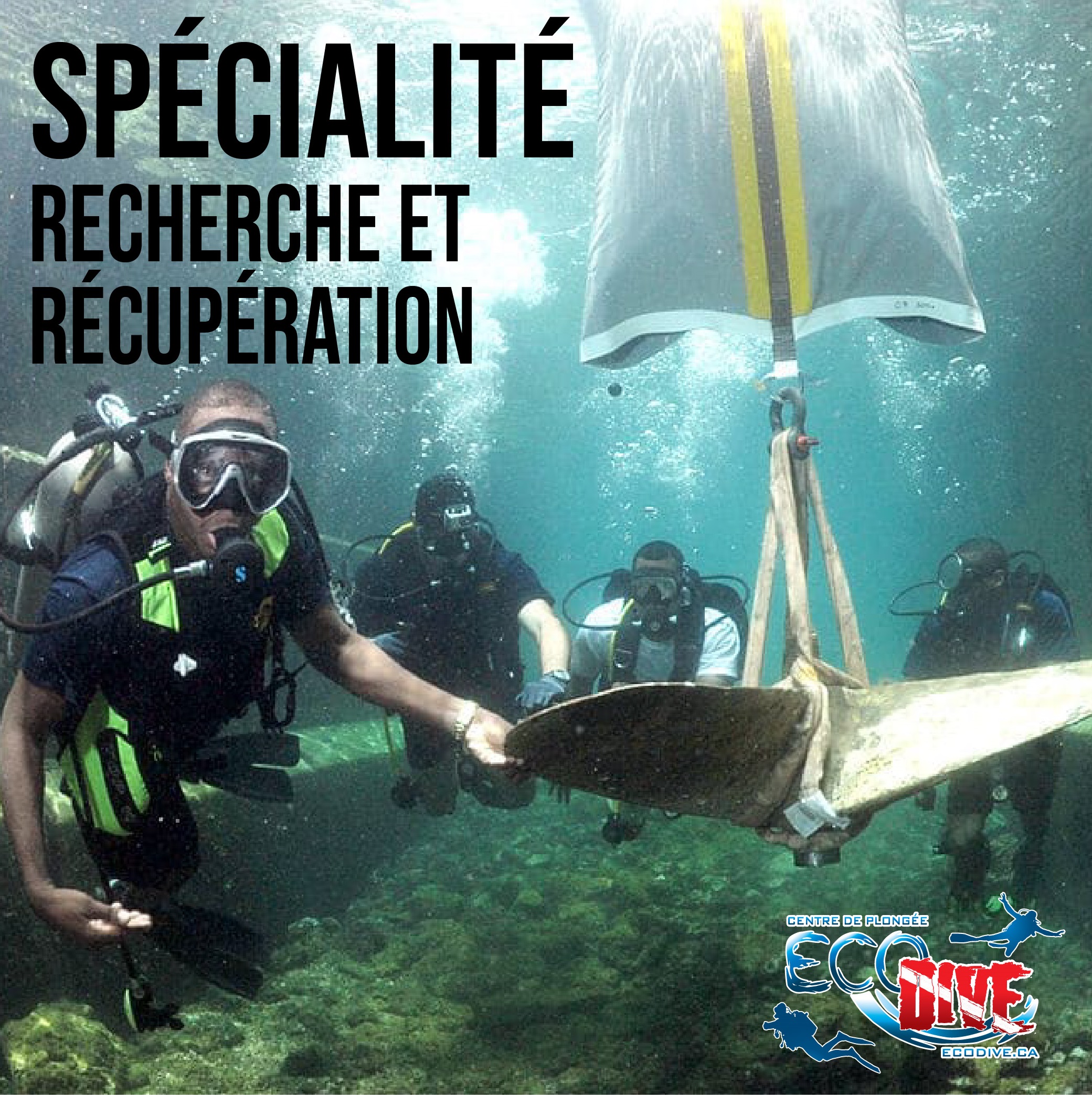 Le Cours de Spécialité Recherche et Récupération s'offre en 1 session théorique de 2h + 4 plongées en milieu naturel.Lors de ce cours, vous apprendrez:
